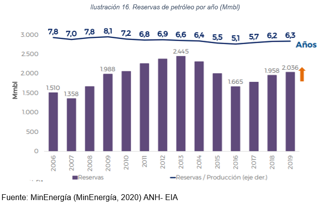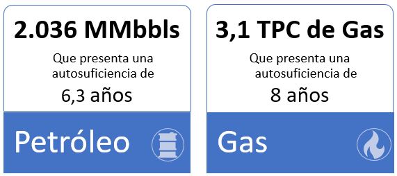 De acuerdo con las cifras reportadas por el MinEnergía para reservas al cierre del año 2019 se estimaba: