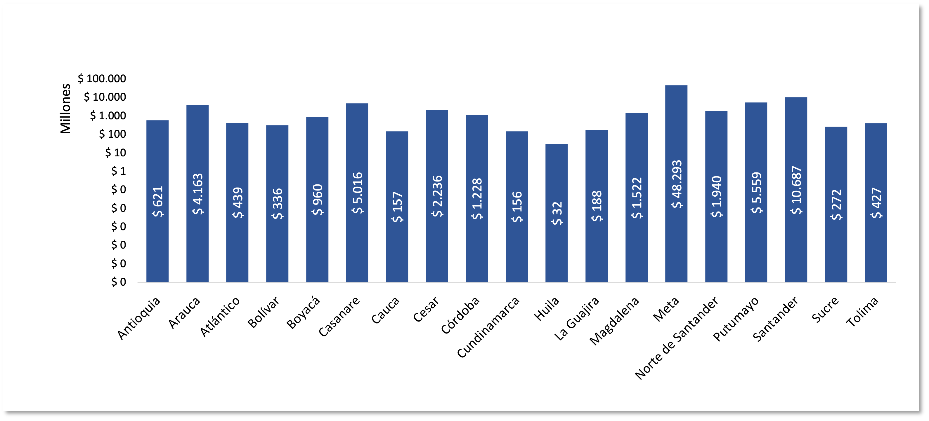 Valor inversiones PBC por departamento año 2021 (Millones de Pesos $)