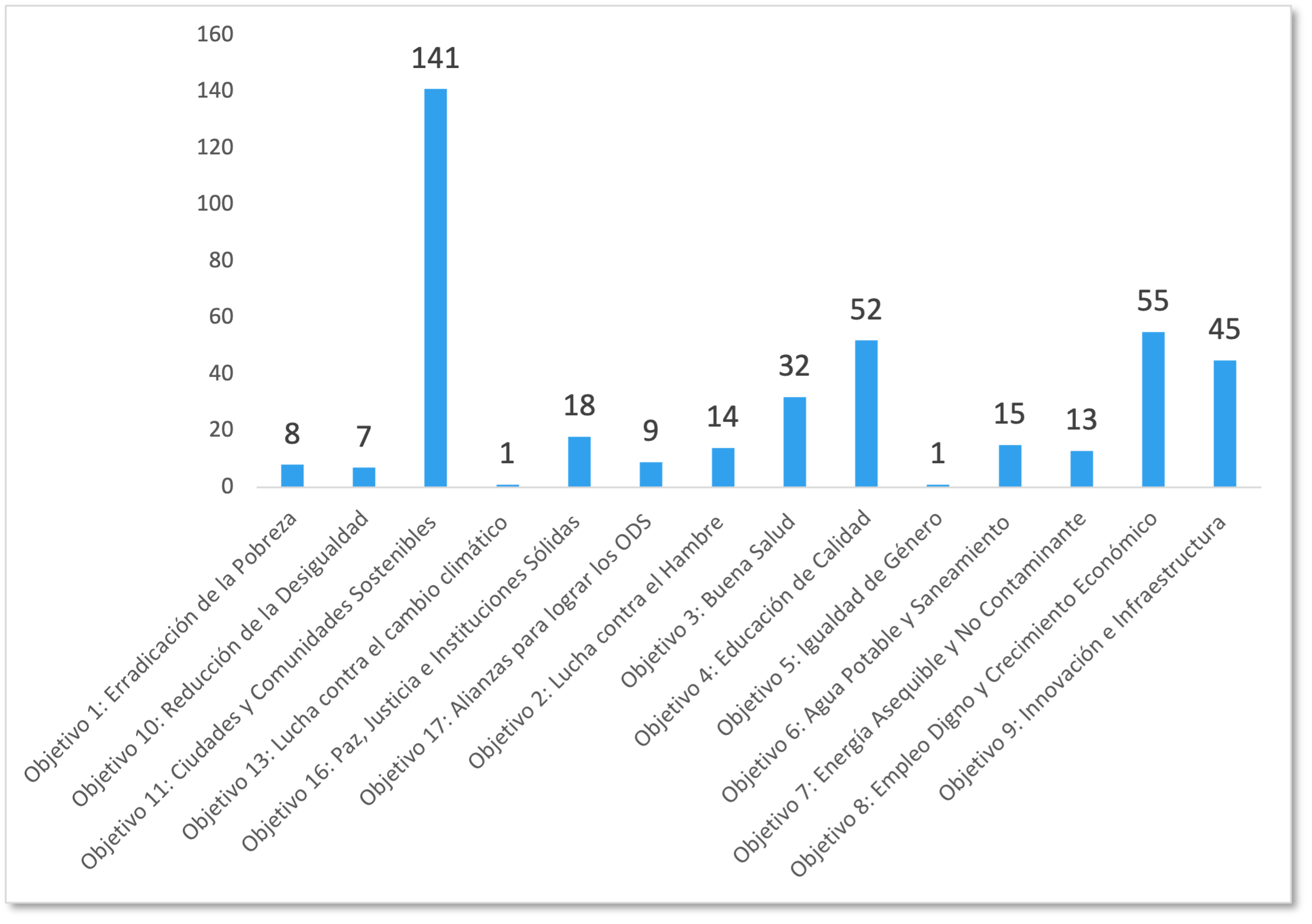 En el 2021 del total de proyectos, acumulados, el mayor número de proyectos (141) apuntaron al Objetivo 11 - Ciudades y comunidades sostenibles, cuyo objetivo es lograr que las ciudades y los asentamientos humanos sean inclusivos, seguros, resilientes y sostenibles. En segundo lugar, se realizaron 55 proyectos enfocados al ODS 8 Empleo Digno y Económico y 52 proyectos enfocados al ODS 4: Educación de calidad.
